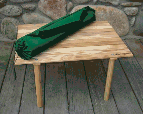 This elegant portable, "bring your own" picnic table is perfect for a blanket picnic at the beach, a roadside lunch on the Blue Ridge Parkway, or drinks and snacks at an outdoor concert. The table is 15 inches tall. For easy transport, the legs unscrew and the whole table rolls up and stores in its own stuff sac with an adjustable shoulder strap. Like all Blue Ridge Chair Works furniture, the Parkway Picnic Table is constructed with solid Ash hardwood, stainless steel hardware, and finished with Danish Oil. When the table is set up it is 22" x 28" and 15" tall and weighs 9 lbs.
