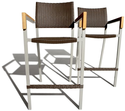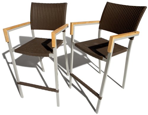 Buy Strathwood Camano All-Weather Wicker Bar Chair with Teak Arm Rests, Set of 2 Now