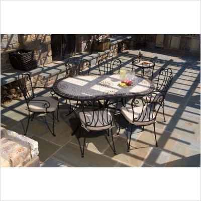 Alfresco Home 21-0845 / 21-0171 Inspired by the beautiful tones of the earth and the vibrant colors of nature, this table is perfect for outdoor dining and entertaining. This table is large enough to host many of your friends and family members. The hand set and grouted mosaic table top is finished and sealed for long lasting appearance and durability. The Pebble Sole 72" Oval Table features a unique mosaic design that will look beautiful in any outdoor setting. With a frame made from top quality wrought iron, this table is built to withstand the elements. Table Features: -Hand set and grouted mosaic table top. -Wrought iron frame construction. -Durable powder coat finish. -Wash frames with a mild soap and water only. -One year limited warranty. -Overall Dimensions: 36" H x 72" D.