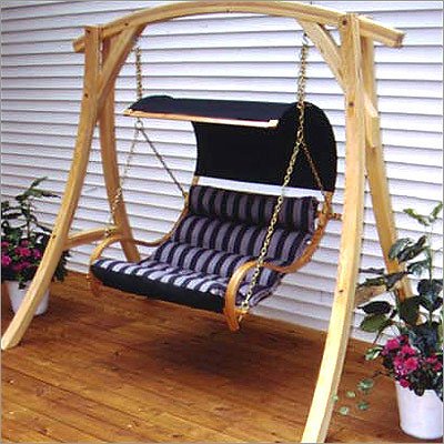 Hatteras Hammocks S-2ST-CBEAM-2-2st-legs The Roman Arc Cypress Swing Stand has won awards for its unique arching design. Crafted using cypress wood, the stand is naturally resistant to weather and insects due to a natural oil present in the wood. It is galvanized hardware to ensure superior strength and safety. Features: -Accommodates a double cushion swing. -Weight limit of 450 lbs. -Galvanized hardware ensure superior strength and safety. -Dimensions: 7" H x 5.5" W x 7" D.