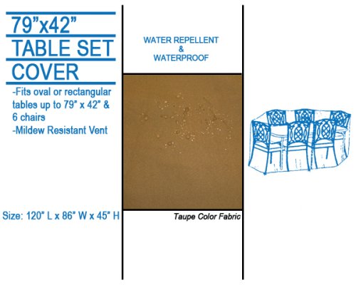 - Mildew resistant vent. Heavy duty water resistant, UV treated polyester.- Fits oval or rectangular tables up to 79"x42" table and 6 - 8 chairs