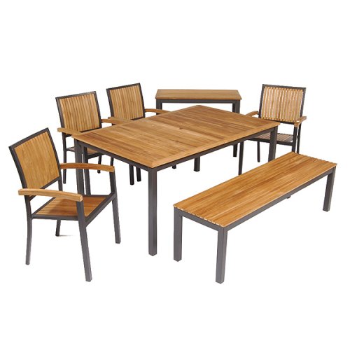 - Bring a World-Traveler Look to Your Backyard with the Teak/Aluminum Garden Collection- Includes Bench, Dining Chair Sets, Side Table, Rectangular Dining Table (Each Sold Separately Unless Noted)