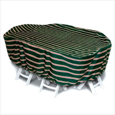 Two Dogs Designs 02765 Add a splash of excitement to your patio furniture covers with the 92" Oval/Rectangle Table & Chairs Set Cover in Green Stripes. While creating a fun outdoor style, this cover also protects your table and chairs from the harsh elements due to its waterproof and weather resistant construction. Weather is also no match for the beautiful fabric; the heavy-duty color infusion process resists fading. Secure hook and loop closures add further protection from wind and dirt. Features: - Weather resistant - Secure hook and loop closures withstand the elements - Velcro ties and closure - 1 year product warranty Specifications: - Material: Heavyweight 600-denier polyester with PVC lining - 27" H x 92" W x 60" D