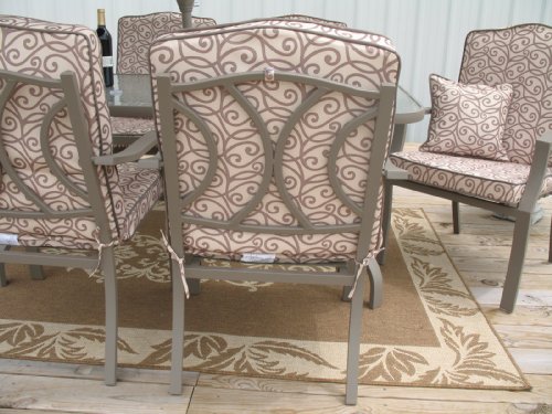 A modern design highlighted by elegant lines and generous proportions, the Trinadad 8-Piece Dining Set is just what you need to entertain in style. The durable aluminum frames sport a lasting, chip- and flake-resistant powder-coated charcoal oatmeal finish. All corners are welded 360 degrees for maximum strength. The spacious seats provide maximum comfort, while simple armrests and legs add an updated feel. The rectangular tabletop is made from .37-inch-thick tempered glass and comfortably seats six guests. This incredible set also comes with the matching umbrella.