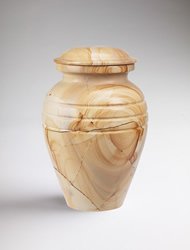 This is a unique item. It's polished marble with an amazing wood grain. People will swear it's teak wood, but it is really marble. The interesting combination of materials makes for an elegant and sophisticated receptacle for the remains of a loved one. Most marble urns have seperate lids which have a tendancy to come loose and fall - and crack. We've addressed the issue of lids falling and breaking by carving this cremation urn from one solid piece of stone - and allowing access through the bottom. Sizing Made Simple. One pound of live weight equals one cubic inch of cremains. 3" = 3 cubic inches 7" = 87 cubic inches 11" = 205 cubic inches For example; A 175 pound person, would yield 175 cubic inches of cremains, which would fit into a 10" urn. A 35 pound terrier will yield 35 cubic inches of cremains, and would fit into a 6" urn.