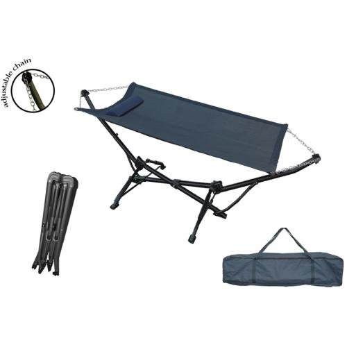 - Easily collapsible single-piece frame opens and closes in one smoth motion. Complete with duffle bag for storage and portability- Opens to a full size hammock 110"L x 46.5"W x 32.25"H, Bed size: 80" x 38.5".