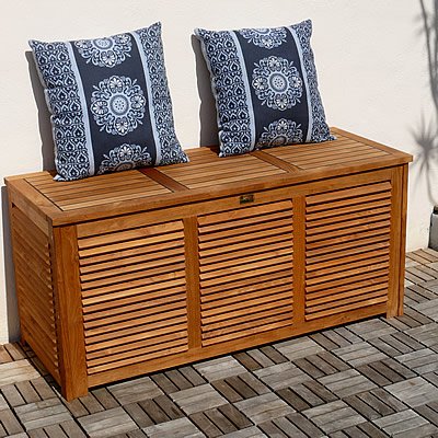 Premium Plantation Teak Storage Box is providing perfect storage room while looking great. If you have a choice, don't settle for the rubbermaid plastic box. The box construction is perfectioned to have air constantly ventilating through the box and keep your cushions, pool toys and tools in good status. Put a cushion on the top and have additional seating for parties. Rubber caulking on the lid-top keeps items in place and avoids sliding.