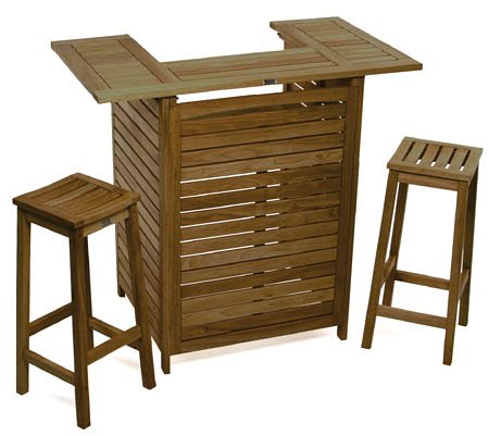 This is a really nice wooden patio bar. The wood is nice and the stools are sturdy. The sink is a nice feature that I didnt see in alot of other patio bars. Some minor assembly problems with the supplied screws, but overall, Im very happy with the purchase.
