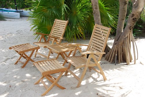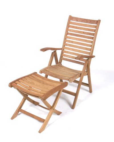 Teak Furniture Gallery's Dorsette Recliner and stool provides a high back, comfortable dining chair that does double duty as a recliner for pulling away from the table and taking that afternoon nap. Many different reclining positions. Footstool can be used as additional seating. Made of 100% teak to last a lifetime and solid brass fittings.
