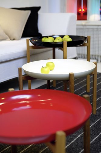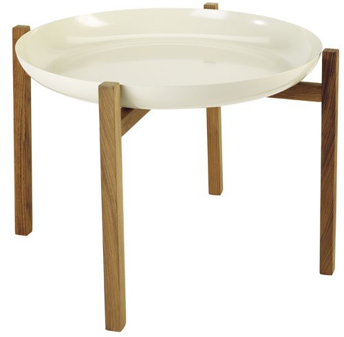 Wood stand for the Tablo Tray. Tablo Tray is not included. The Tablo Tray, designed by Magnus Lofgren, is a deep-cut, 2" serving tray that is as decorative as it is useful. Thanks to its high rim and solid form, the risk of spilling food or dropping items is kept to a minimum. The Tablo can be used alone as a tray or as a table when placed on an optional four-legged teak wood stand. Low (15.75") or high (21") stands are sold separately. Use the Tablo as a tray, a sideboard, birdbath or as a place for outdoor plants. For a total look, group them on several wood stands of different heights. Tray comes in your choice of three lacquered finishes.