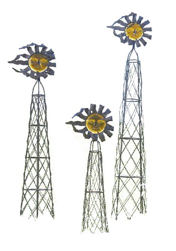 Obelisk-style trellises with windblown-look glass surface and powdercoated finish, Set of 3 (antique black, red , and rust), Lg: 7-inch D by 48-inch H, Md: 5-1/2-inch D by 39-inch H, Sm: 4-3/4-inch D by 27-1/2-inch H. Iron. CBK Exclusive