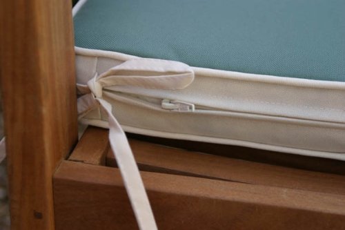 Each cushion has ample length ties to keep your cushion in place even during those gusty days. Single piping provides a clean looking finished edge. These cushions are filled with 2 inches of foam and polyester that makes our already comfortable benches and chairs even more so. Fabric feels soft and comfortable to the touch but is rugged outdoors.