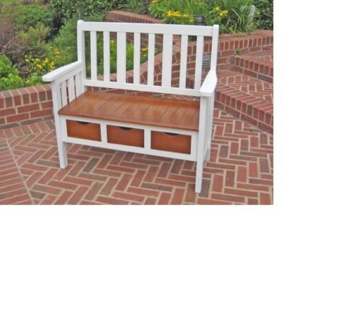 - Color: White and Oak- Relax in style with this 3-drawer acacia UV painted bench