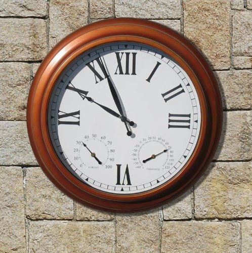 Buy 24-Inch Radio Controlled Indoor/Outdoor Clock with Thermometer and Humidity Gauge, Copper Finish Now