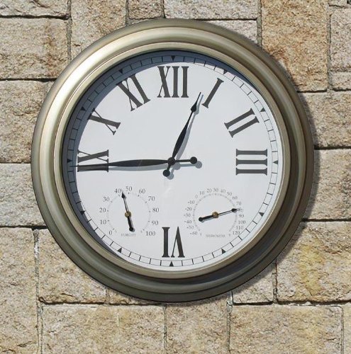 Buy 24-Inch Radio Controlled Indoor/Outdoor Clock with Thermometer and Humidity Gauge, Pewter Finish Now