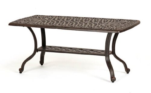 This furniture arrives mostly assembled. 777-F Features: Includes plastic foot levelers Outdoor and indoor use Made of high quality cast aluminum Triple polished with a powder coated paint and an antique finish It will not chip, flake or scratch Finish: Desert Bronze Dimensions: 42"(W) x 21"(D) x 18"(H)