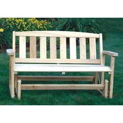 Elegantly styled Casual Furniture that redefines backyard beauty. Environmentally conscious designers will love this eco-friendly Cypress 4 Foot Mission Glider. You�ll glide your way to serenity in the rich warm cypress wood tones of this elegantly styled gliding bench with its stainless steel fasteners for outdoor resilience. This beautiful bench�s naturally insect repellent construction offers added benefits for use outdoors.Features: Handcrafted From Distinctive, Durable Cypress Southern Cypress Resists Decay, Splitting And Checking Kiln-Dried And Moulded To A Smooth Finish Ready For Stain Or Paint If Desired Stainless Steel Fasteners For Rust-Free Years Of Enjoyment Assembly Required Finish:Southern CypressDimensions:Overall: 54"(W) x 26"(D) x 32"(H)